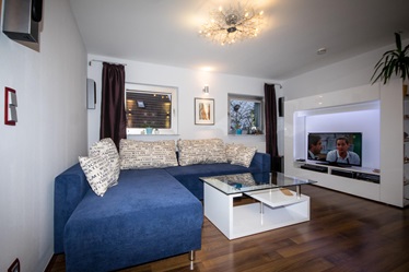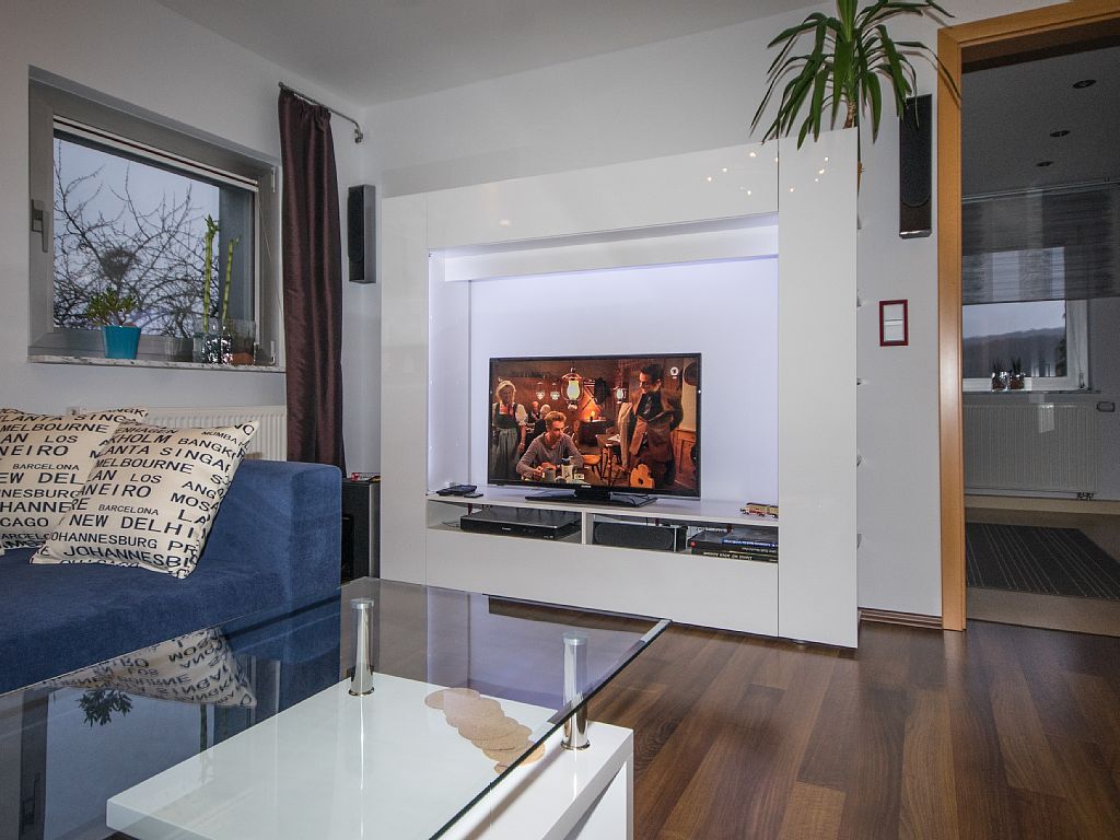 Das Wohnzimmer ist mit einem großen SAT-TV, einer Soundanlage, Blu-Ray-, DVD-, CD-Player mit Bluetooth-, USB- und AUX-Eingang, WLAN ausgestattet. Eine bequeme Eckcouch, ein Couchtisch, ein Sideboard, Spiele, Bücher u.v.m. gehören ebenso zu der umfangreichen Ausstattung.